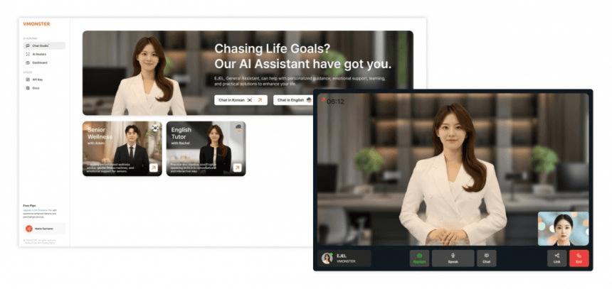 저희 브이몬스터가 텍스트 기반의 챗봇을 실시간 영상으로 변환해 주는 대화형 AI 아바타 솔루션, '브이몬스터 스튜디오(VMONSTER Studio)'를 정식 출시했습니다.