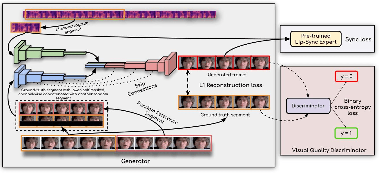 흔히 립싱킹 (lip syncing)이라고 불리우는 이 요소는 Wav2Lip이 공개된 시점부터 토킹포토 기술의 퀄리티를 결정하는 핵심 요소였습니다. 쉽게 말하자면, 영상이 말을 할 때, 현재 음성과 어긋난 입모양을 하고 있으면 영상을 보는 사람이 이 영상이 실제같지 않다고 생각하겠죠? 이것을 결정하는 요소가 립싱킹입니다.