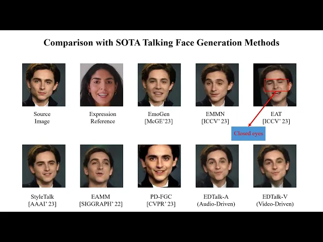 사람은 말을 할 때 자연스럽게 그 감정을 표현합니다. 음성에는 듣기만 해도 행복한 기분이 담겨 있지만, 토킹 포토는 무표정하게 말을 한다면 어떨까요? 아마 말과 표정이 일치 하지 않는 어색함 때문에, 실제보단 만들어진 영상이라고 생각하지 않을까요? 감정을 표현하고, 그 감정의 단계까지 조절 가능한 토킹 포토는 어쩌면 실제 사람 영상과의 구분을 어렵게 만드는, 미묘하면서도 가장 중요한 요소가 아닐까 싶습니다. 하지만 앞선 두 문제를 풀어내는데에도 꽤 오랜 시간이 걸렸기에, 자연스러운 감정까지 표현하는 토킹 포토는 본격적인 연구가 시작된지 불과 2년 정도밖에 되지 않았습니다.