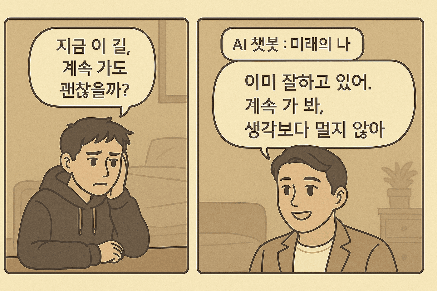 이 구조는 특히 불확실성에 민감한 사용자 — 예를 들어 진로를 고민하는 대학생, 커리어 전환을 앞둔 직장인, 창업을 준비 중인 예비 창업자 — 에게 잘 작동합니다. 이들은 대부분 “지금의 선택이 맞을까?“라는 질문을 반복하게 되고, 그 질문에 가장 설득력 있게 대답할 수 있는 상대가 ‘미래의 나’라는 AI 캐릭터인 셈입니다.