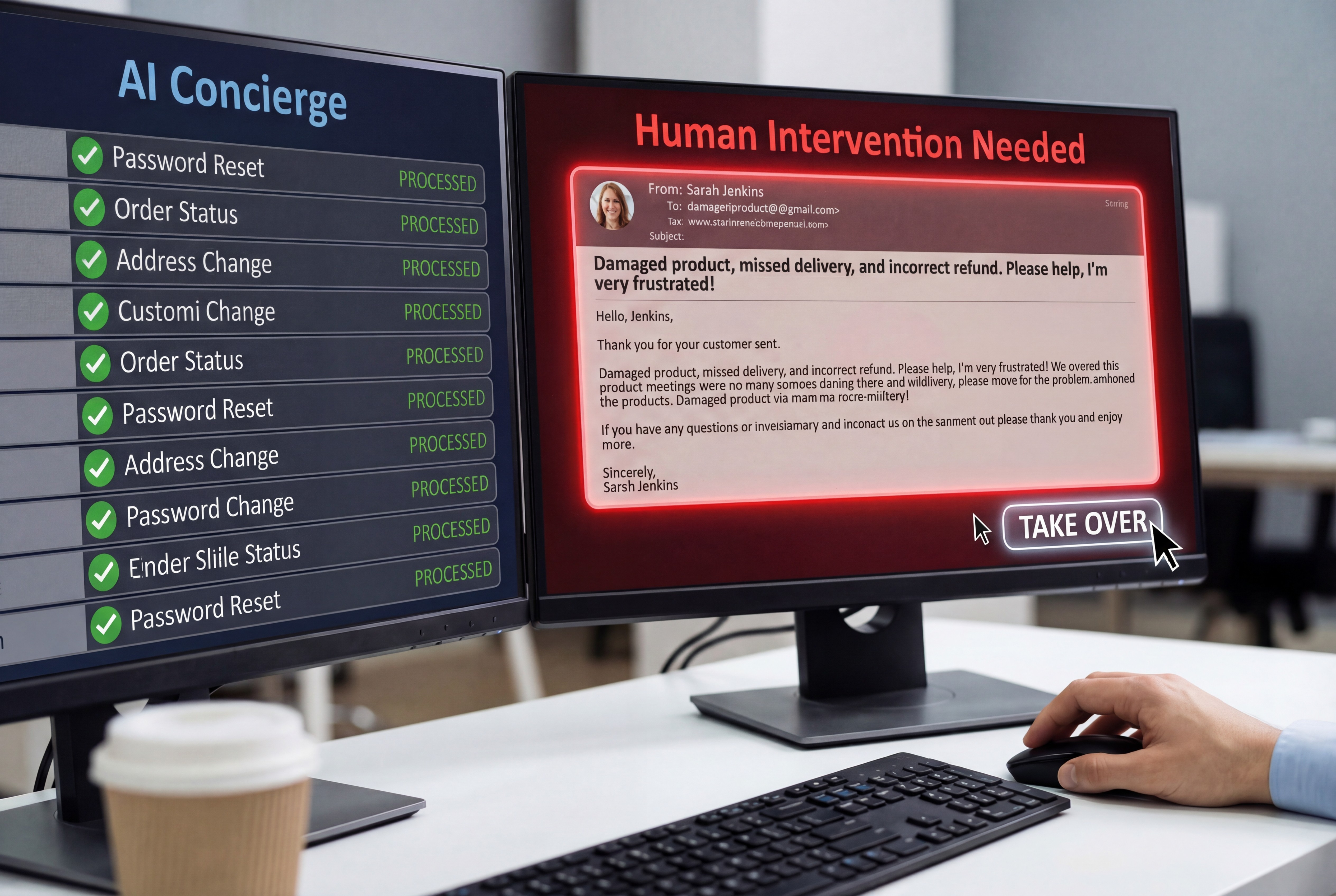 실시간 개입과 모니터링: AI가 고객을 응대하는 과정을 사람이 모니터링하다가, 답변의 확신도가 낮거나 감정 케어가 필요한 순간 즉시 개입합니다. 사람은 '단순 반복 응대'에서 벗어나 ‘최종 의사결정자 및 관리자'의 역할을 수행하게 됩니다.